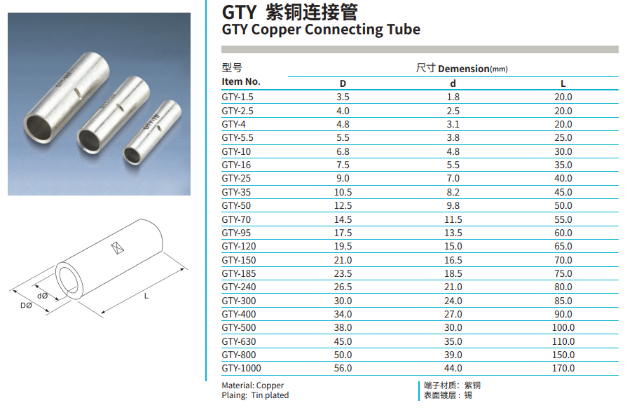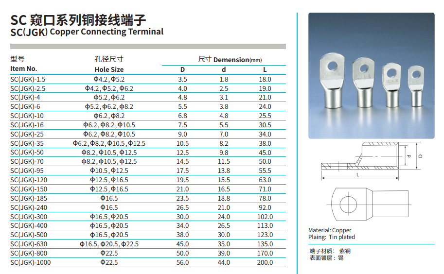 Products: SC(JGK) Copper Connecting Terminal, GTY Copper Connecting Tube, DT Copper Connecting Terminal