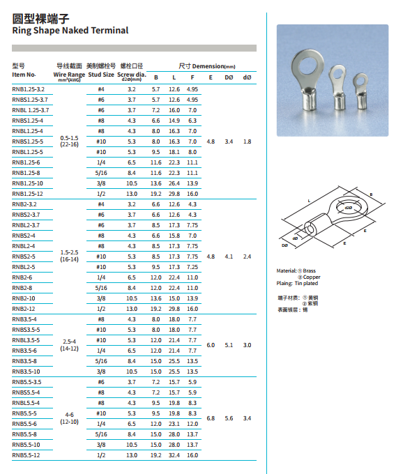 Ring Shape Naked Terminal: Provides maximum contact area, fixed by screw, resistant to vibration and loosening, suitable for critical connection points that need to carry high currents.