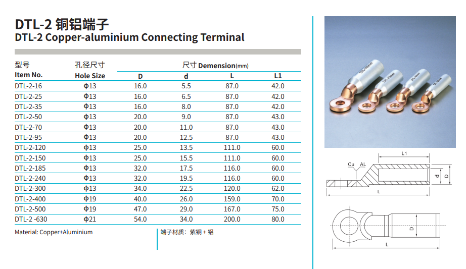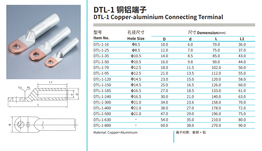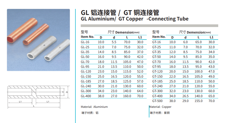 Products: GTL Copper-Aluminium Connecting Tube, DTL-1 Copper-Aluminium Connecting Terminal, DTL-2 Copper-Aluminium Connecting Terminal