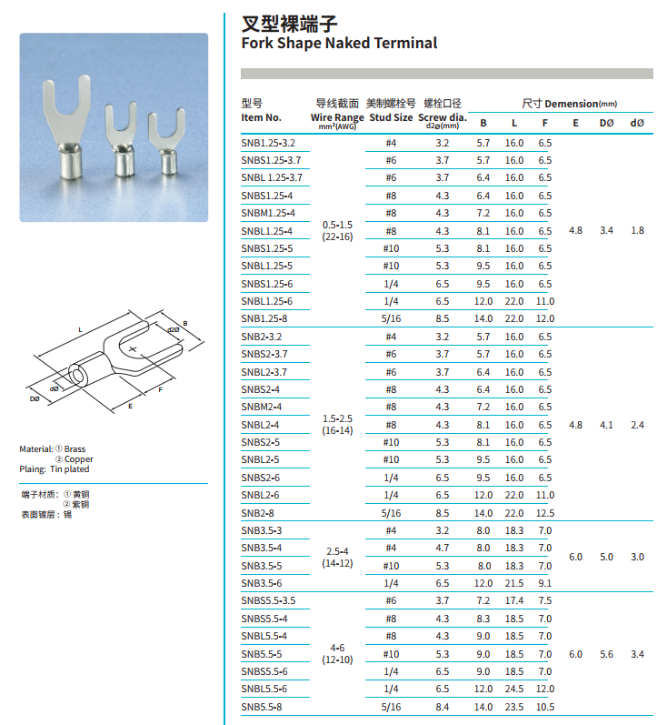 Fork Shape Naked Terminal: Easy installation and removal, convenient for maintenance and inspection, often used in circuits requiring frequent testing or replacement.